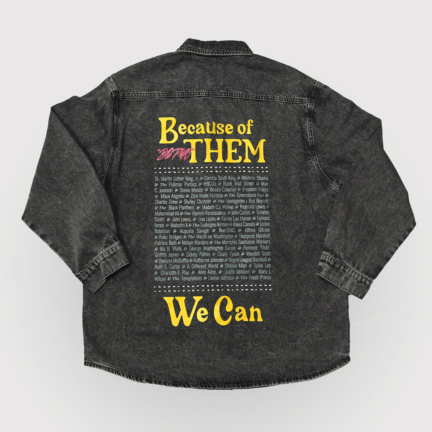 The BOTWC Ancestors Denim Button Up shirt. Screen printed graphics on a midweight denim shirt.